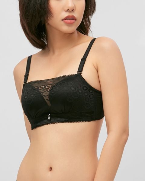 - Điểm nhấn của mẫu áo này nằm ở thiết kế ren mềm mại che phủ giữa 2 cup áo đem lại vẻ đẹp quyến rũ, yêu kiều cho người mặc.